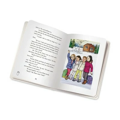 Take a sweet trip to the Cozy Cabin with Sandy! This Our Generation 18-inch doll has dark-brown eyes that open and close, long brown hair that’s fun to brush and style, and is posable! Sandy can bend her knees and elbows and rotate her neck, arms, and legs to easily change into her 2 colorful outfits. She arrives wearing a festive sweater dress with comfy leggings and pink boots. Dress Sandy in the cute ski lift graphic top with the gray joggers and snuggle under the fluffy blanket to enjoy a story with tasty cookies! Follow Sandy’s journey in the “Off to Winter Camp” storybook as she tries to solve a yeti mystery! The easy-to-read chapters are perfect for younger readers, and it makes for a great bedtime story too! (Our Generation Cozy Cabin sold separately)