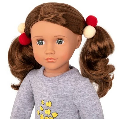 Get ready for a night at the movies with the Our Generation Pop-Pop Top outfit for 18-inch dolls! Easily slip on the pair of polka-dot leggings and keep cozy with the popcorn-print sweatshirt. It features easy-open closures to quickly put on and remove, so your besties will be ready just in time for the feature presentation! Give your dolls super fun hairstyles as you accessorize with the 2 pom pom hair elastics, then easily slip on the bright red shoes to complete the ultimate movie look. Theater fashion is always in style! (Dolls and OG Cinema Movie Theater sold separately)